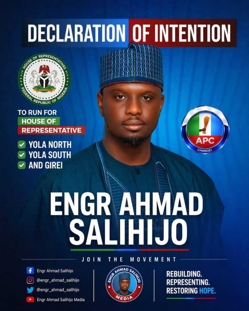 Engr. Ahmad Salihijo Ahmad, a House of Representatives aspirant for Yola North, Yola South and Girei Federal Constituency in the forthcoming elections, has congratulated Mustapha Atiku Ribadu on his election as the State Party Secretary of the All Progressives Congress (APC) in Adamawa State.
